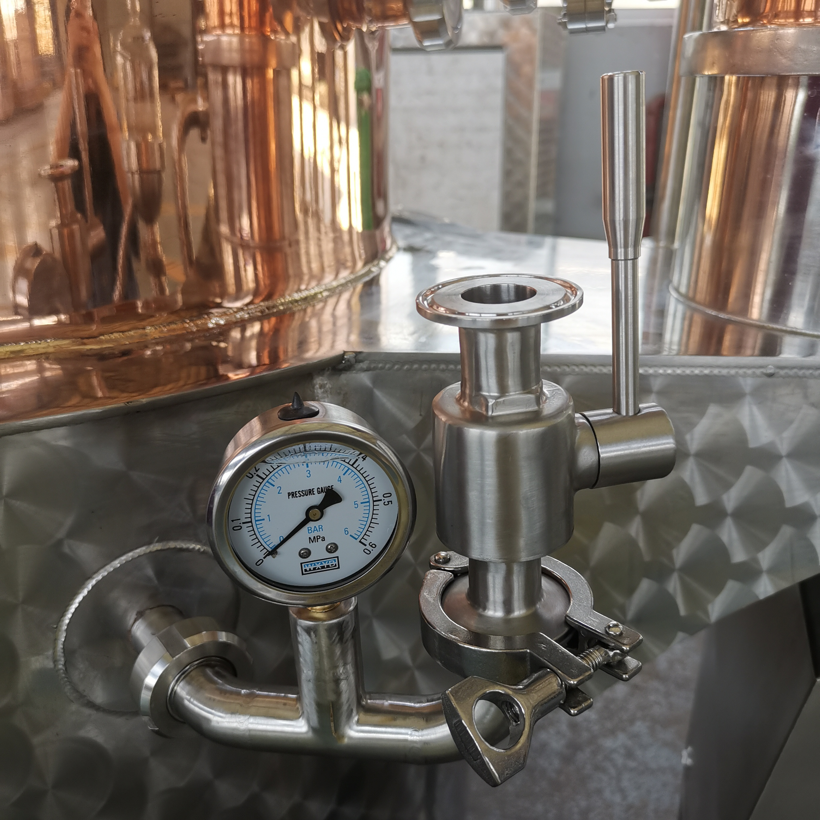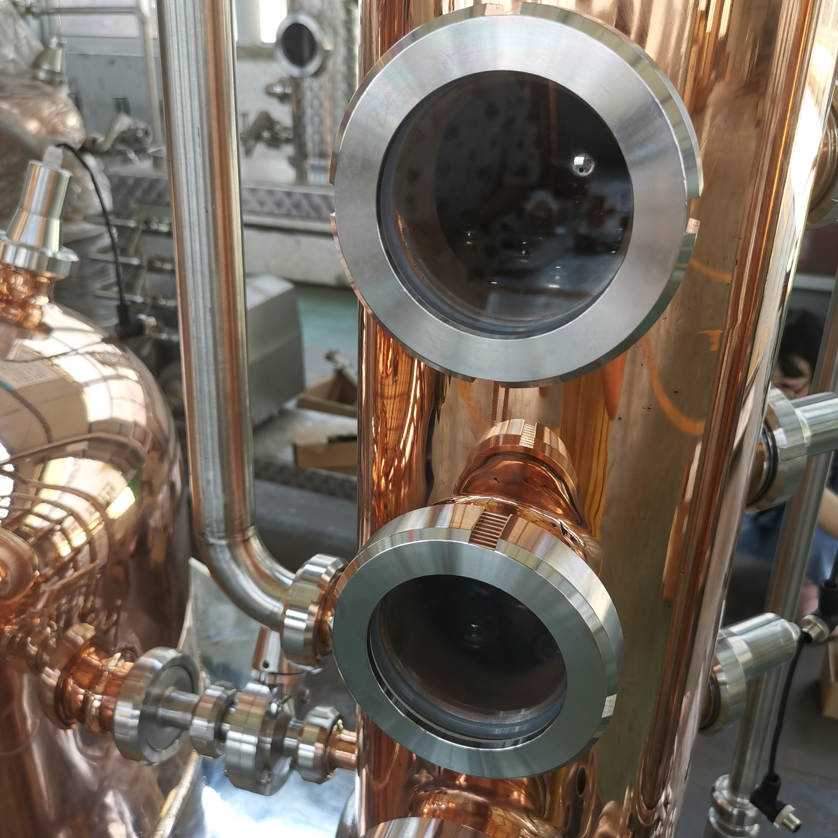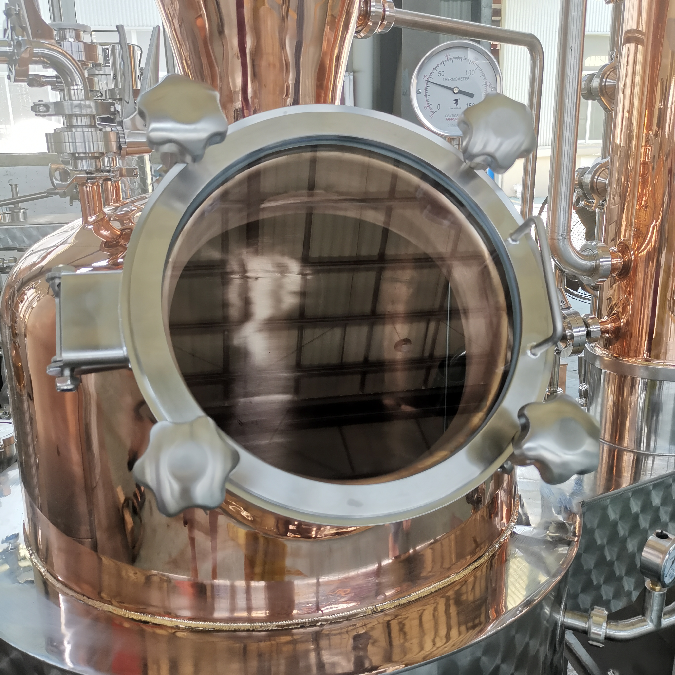 Premium Copper Construction –Enhances flavor development by removing sulfur compounds, making it ideal for smooth, high-quality brandy, whiskey, and rum. This feature is a hallmark of well-designed commercial alcohol distilling equipment.